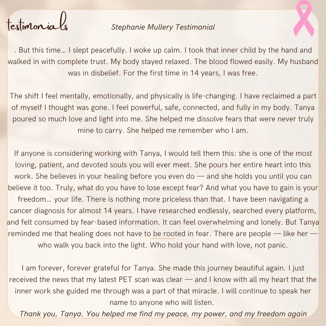 Whether you are a high-performing individual navigating mental blocks and stress overload, or someone facing a diagnosis and feeling consumed by fear or anxiety, this is a space to slow down, feel supported and reconnect with the present moment without being driven by fear.